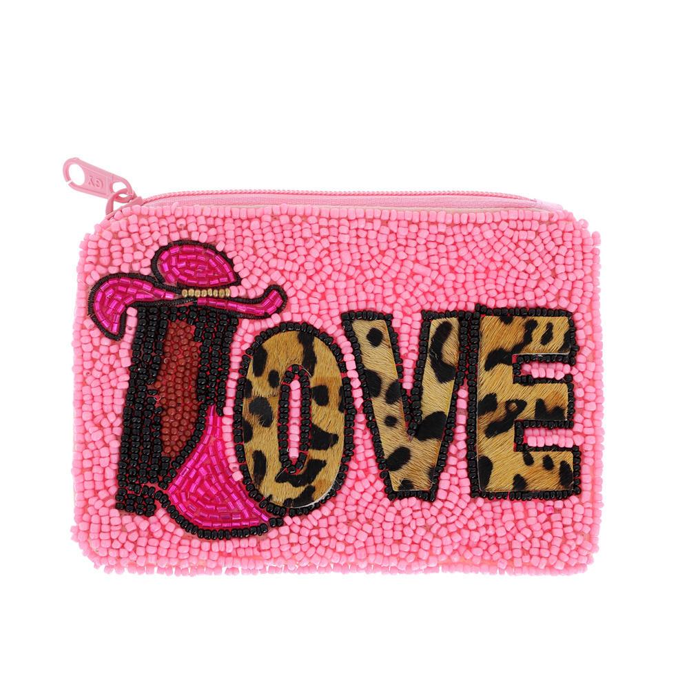 "LOVE" WESTERN COWGIRL SEED BEAD HANDMADE BEADED ZIPPER VALENTINE'S DAY COIN BAG