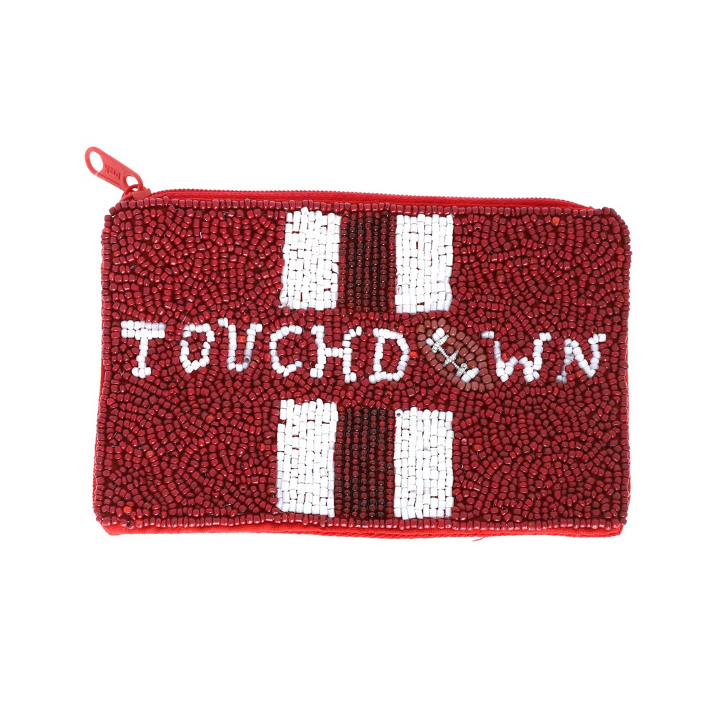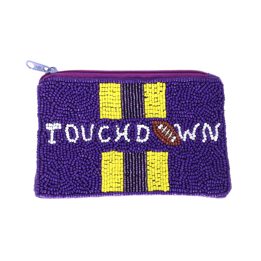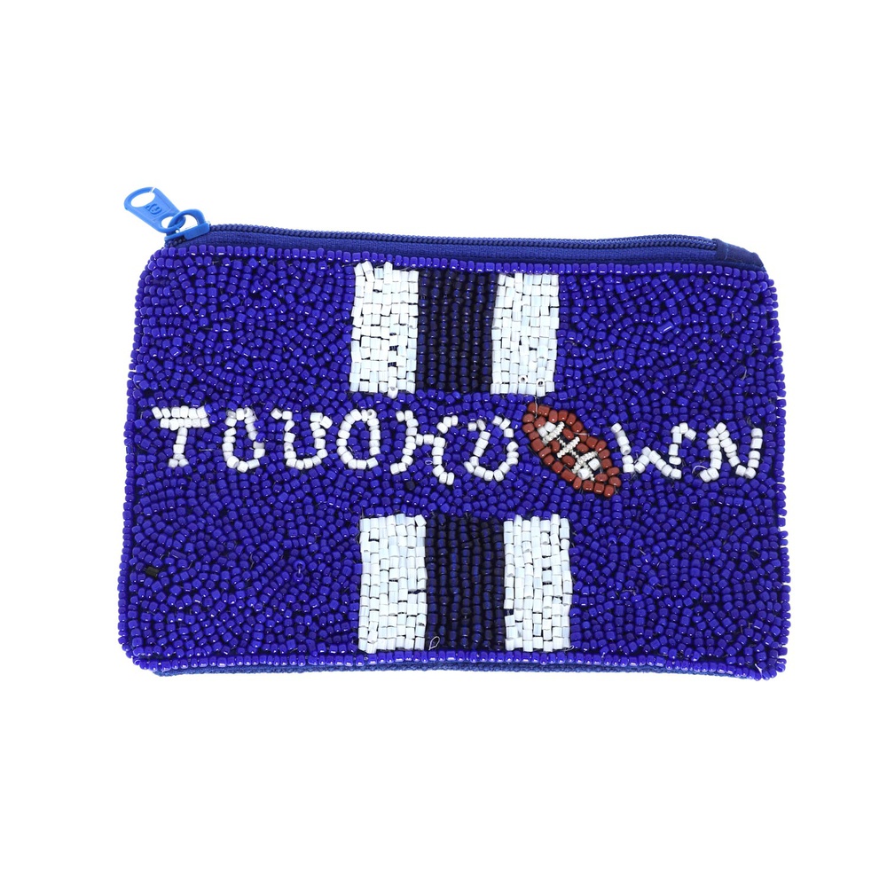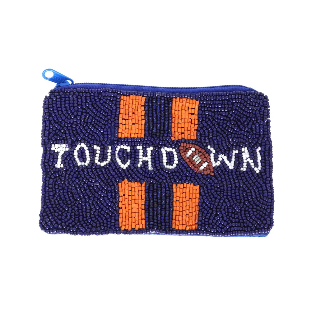TOUCHDOWN STRIPED FOOTBALL SEED BEAD HANDMADE BEADED ZIPPER COIN BAG