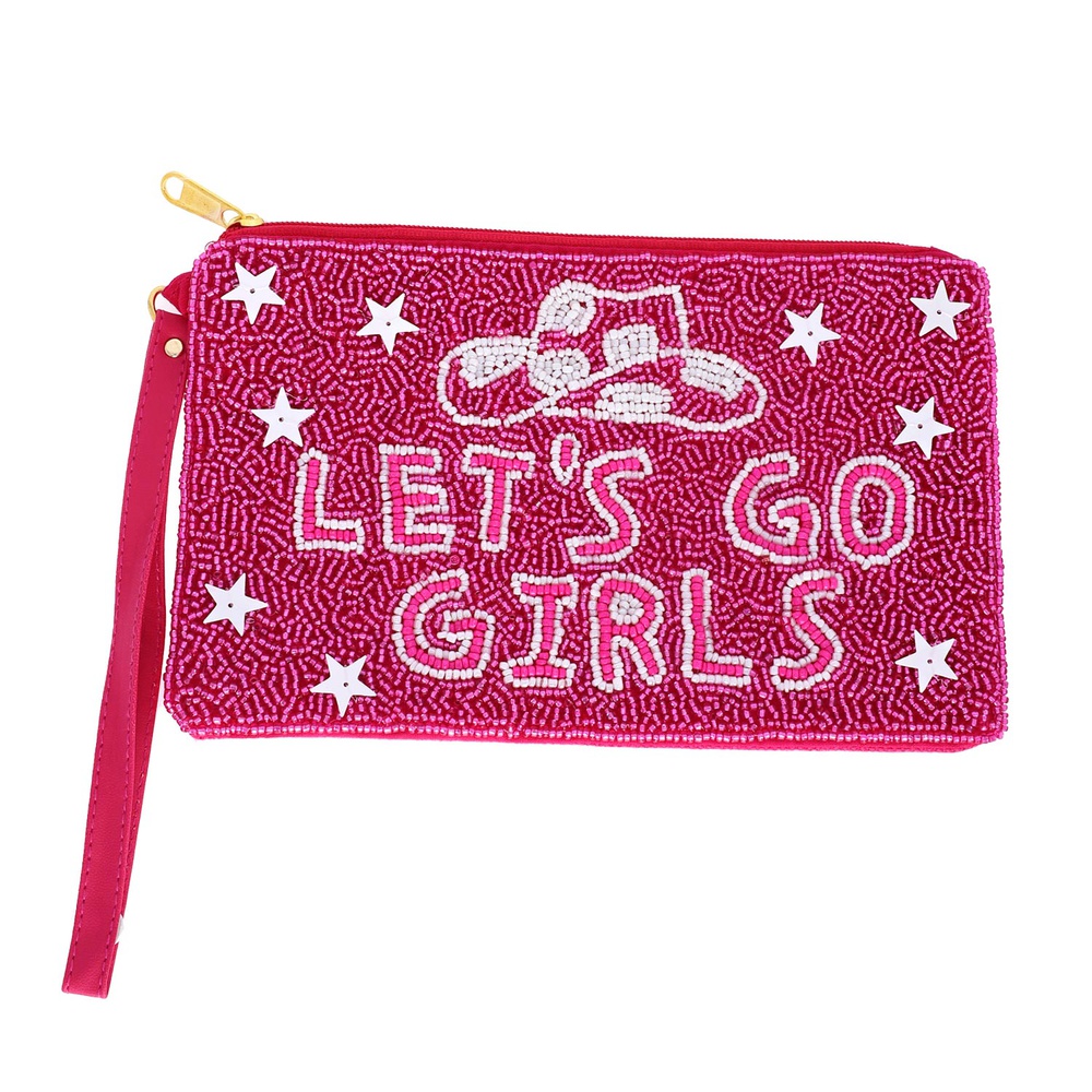 WESTERN "LET'S GO GIRLS" STAR SEQUIN COWBOY HAT HANDMADE BEADED ZIPPER COIN BAG WITH WRISTLET STRAP