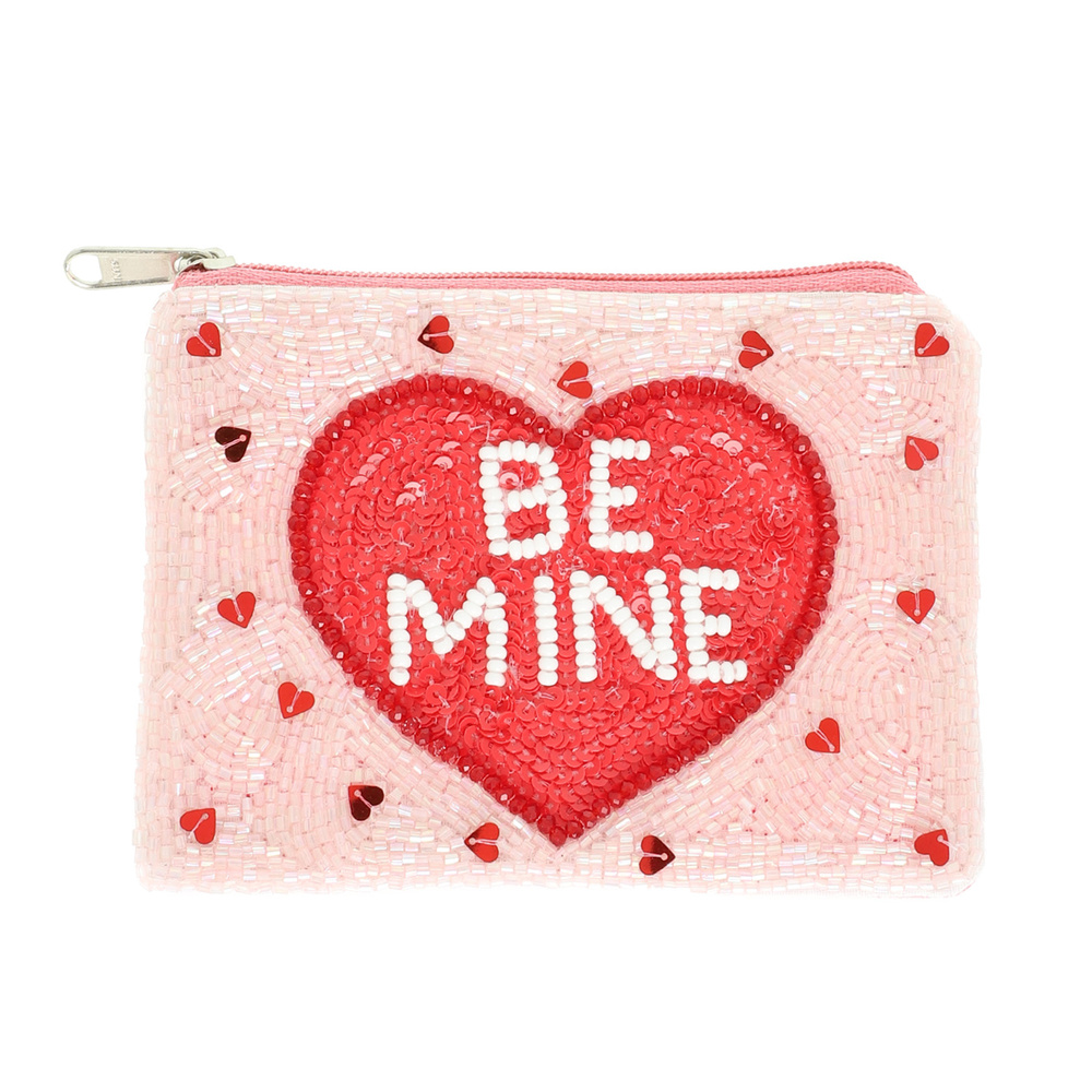 VALENTINE'S DAY "BE MINE" SEQUINS SEED BEAD EMBELLISHED COIN BAG