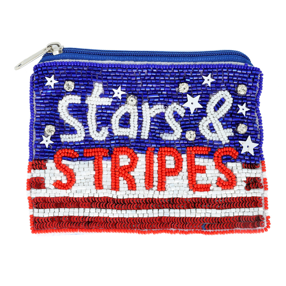 Patriotic Stars & Stripes Seed Beaded Coin Bag