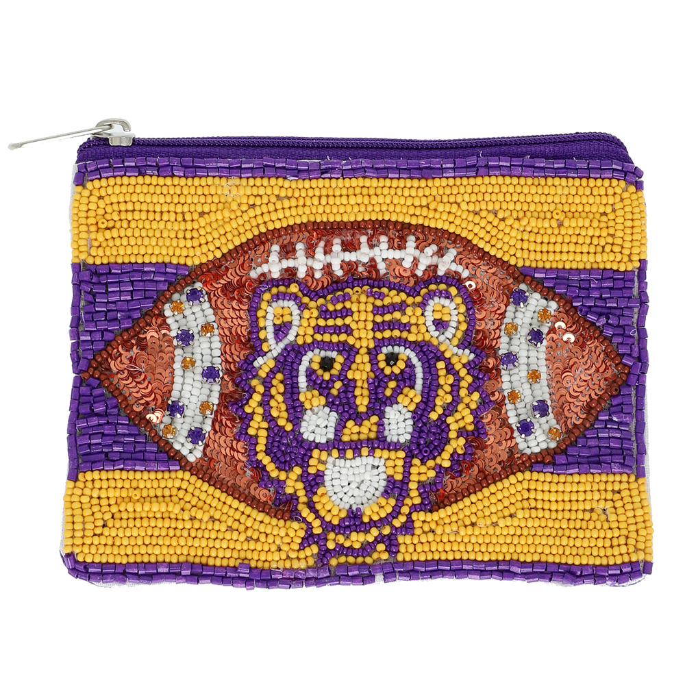 Tiger Football Rhinestone Seed Beaded Coin Bag