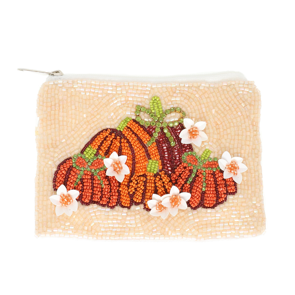 FLORAL PUMPKIN PATCH SEED BEAD EMBROIDERED COIN BAG