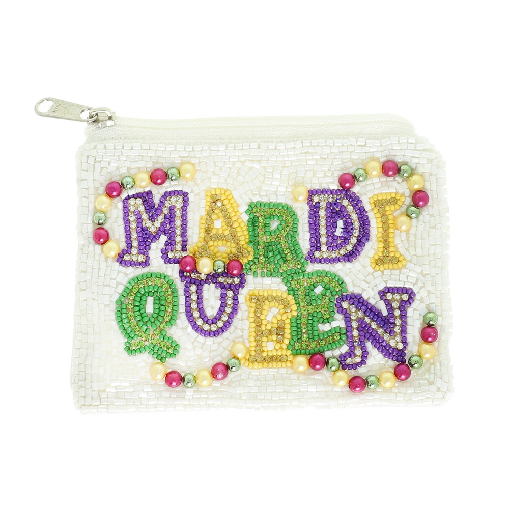 MARDI GRAS THEME "MARDI QUEEN" PEARL BEAD CRYSTAL EMBELLISHED COIN BAG