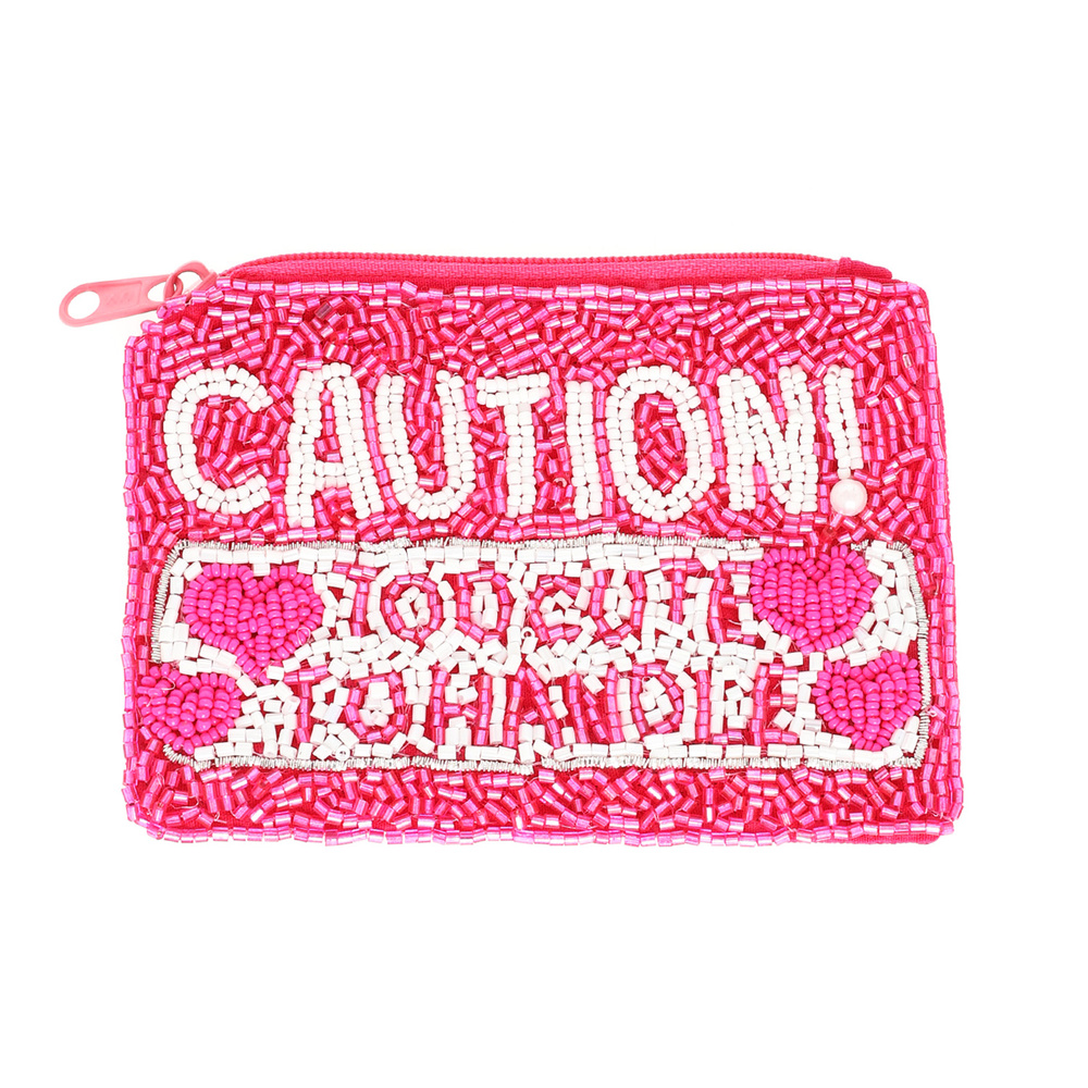 "CAUTION TOO CUTE TO HANDLE" BEAD PEARL EMBROIDERED COIN BAG