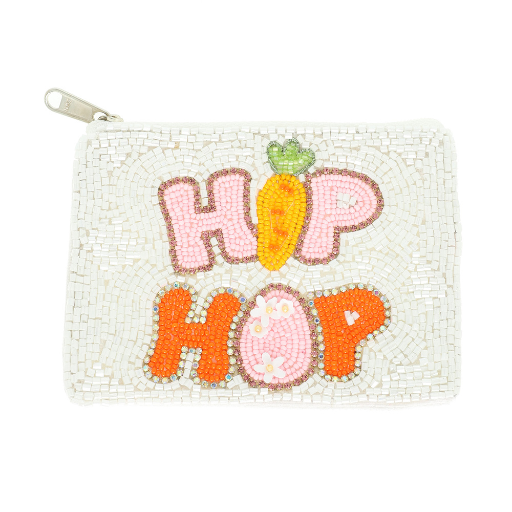 EASTER THEME "HOP HOP" CRYSTAL RHINESTONE BEAD EMBELLISHED COIN BAG