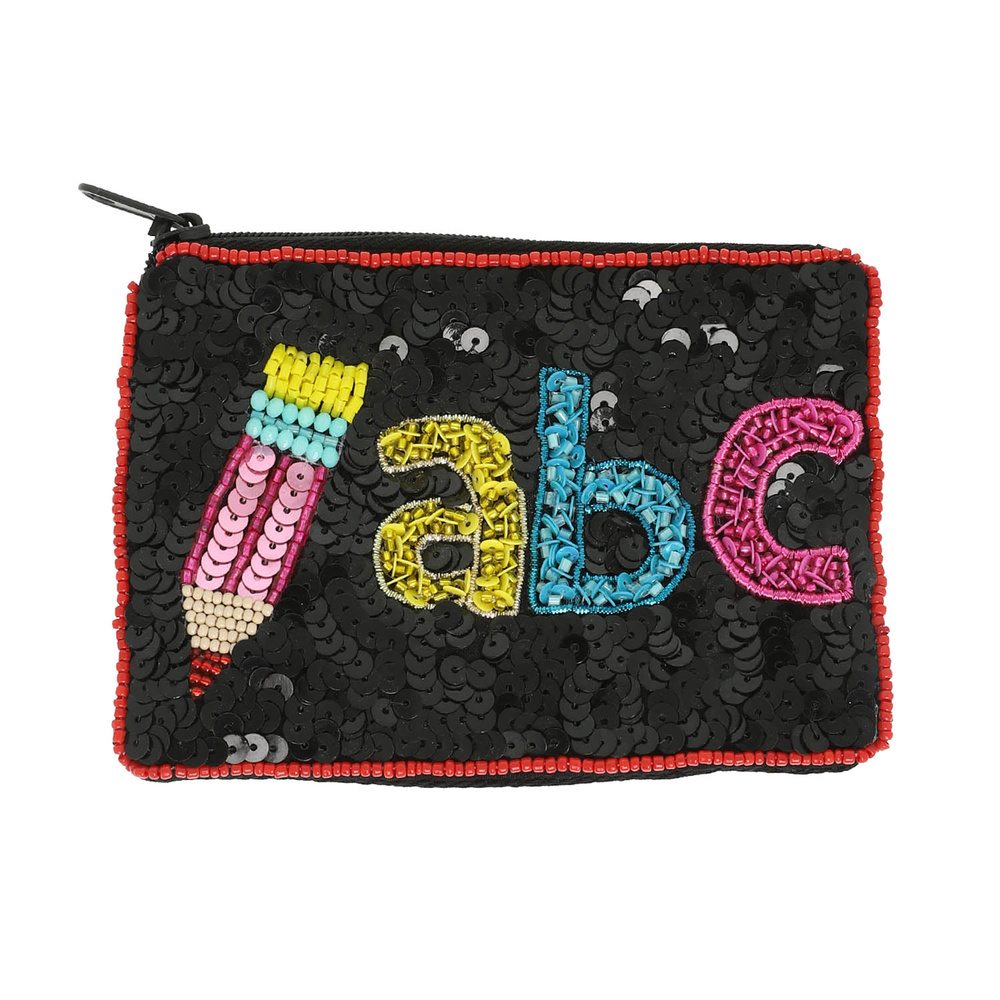 SHCOOL THEMED "ABC" SEQUINS SEED BEADED COIN BAG