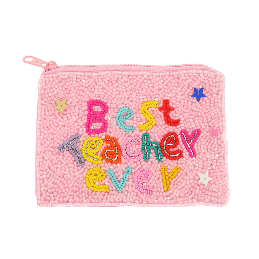 BEST TEACHER EVER COLORFUL SEED BEADED COIN BAG