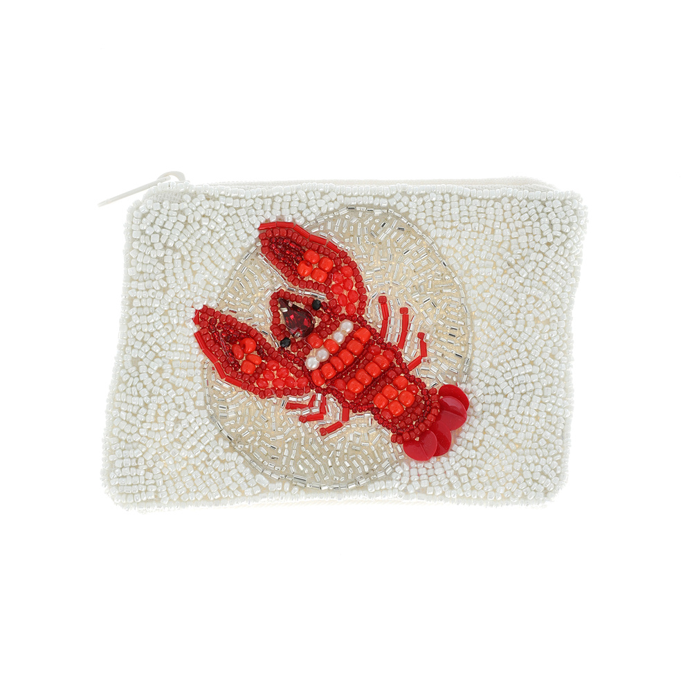 Shore Thing Handmade Nautical Red Lobster Bead Mix Beaded Coin Bag