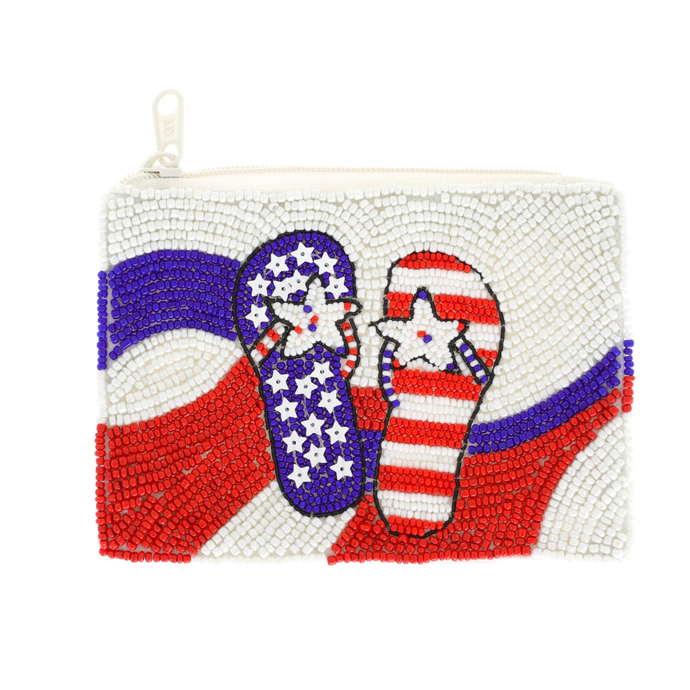 USA FLAG SANDALS - SEED BEAD PATRIOTIC HANDMADE BEADWORK ZIPPER COIN BAG