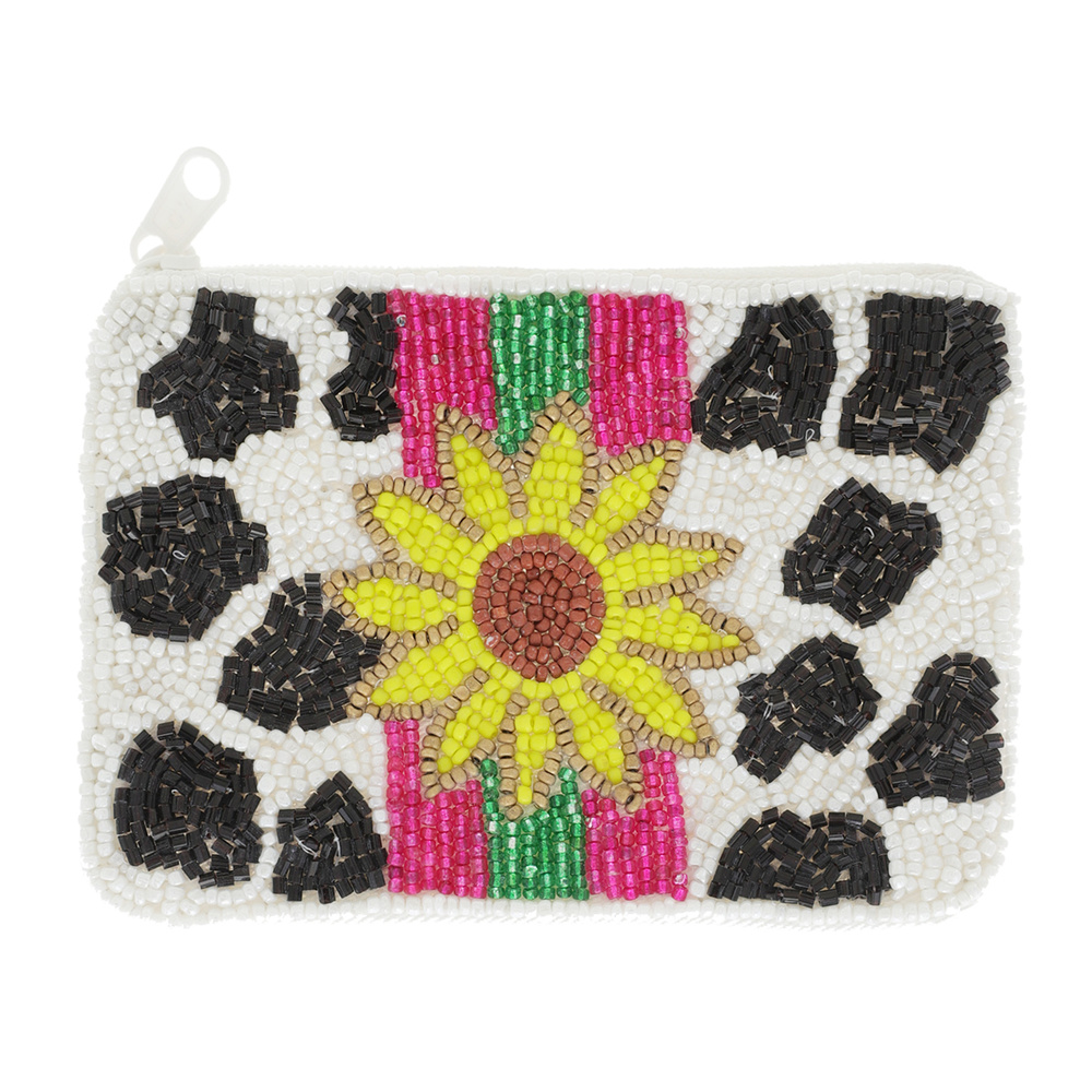 Sunflower Seed Bead Handmade Beaded Cow Print Coin Purse Zipper Wallet