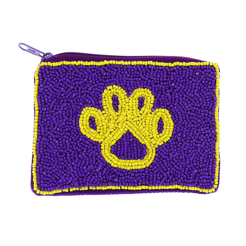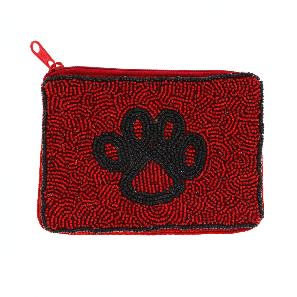 PAW PRINT SEED BEAD HANDMADE COIN PURSE WALLET