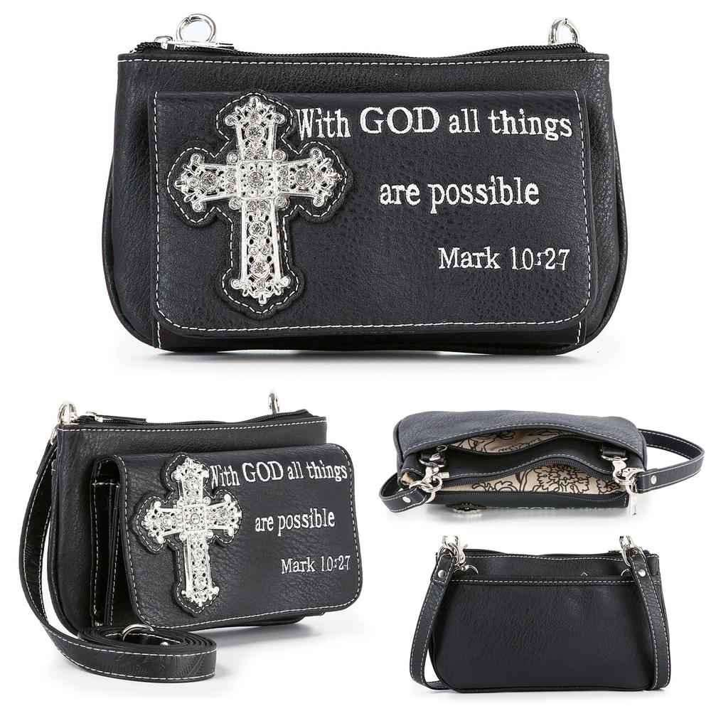 22” INCH ADJUSTABLE STRAP FAUX LEATHER WITH LINED INTERIOR 2 INTERIOR SLIP POCKETS AND 1 ZIP POCKET DUAL TOP ZIPPER CLOSURE SILVER-TONED HARDWARE