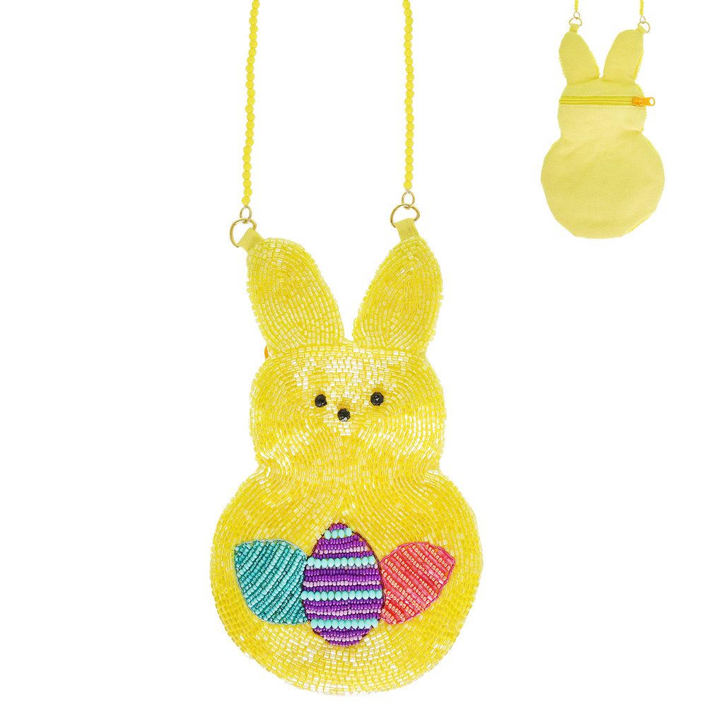 EGG THEME EASTER BUNNY SEED BEAD EMBELLISHED CROSSBODY BAG WITH DECORATIVE STRAP