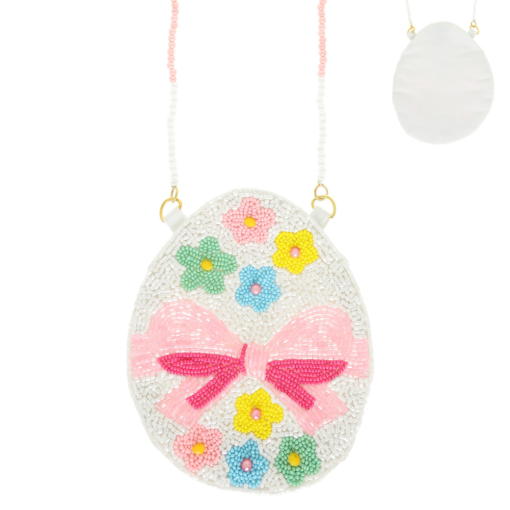 FLORAL EASTER EGG SEED BEAD EMBELLISHED CROSSBODY BAG WITH DECORATIVE STRAP