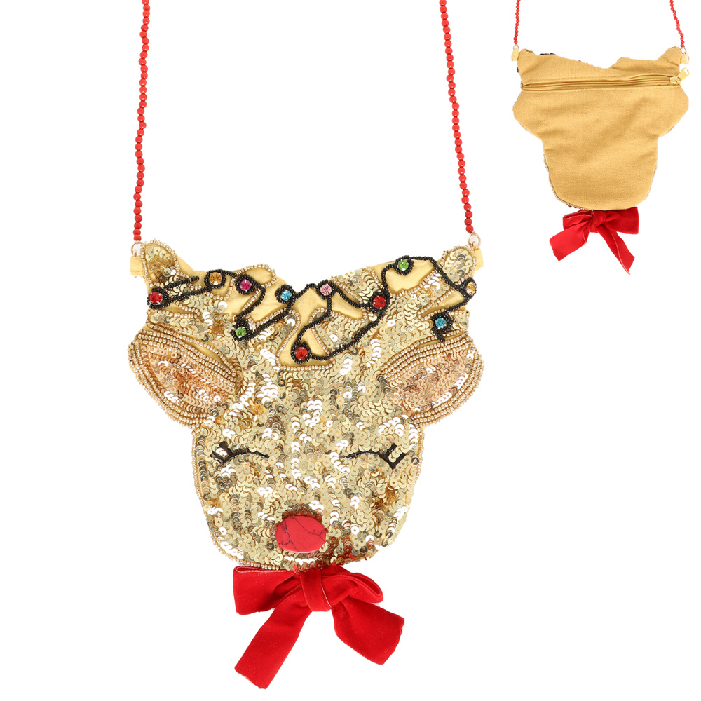 CHRISTMAS RED NOSE REINDEER CRYSTAL BEAD SEQUINS EMBELLISHED CROSSBODY BAG