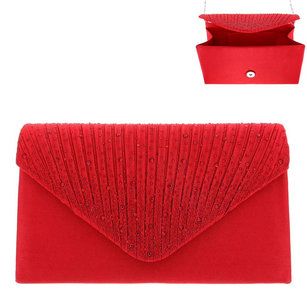 ELEGANT CRYSTAL RHINESTONE ENVELOPE CLUTCH HANDBAG WITH CHAIN STRAP