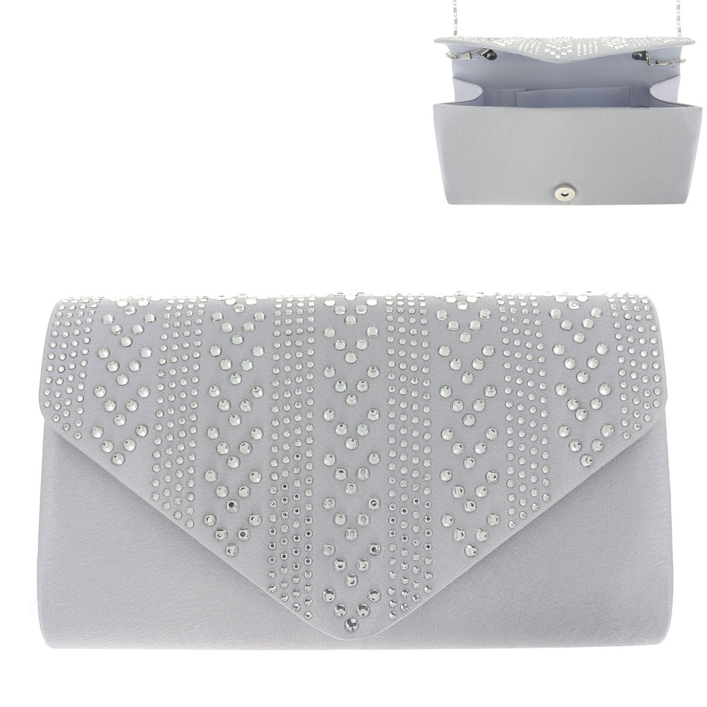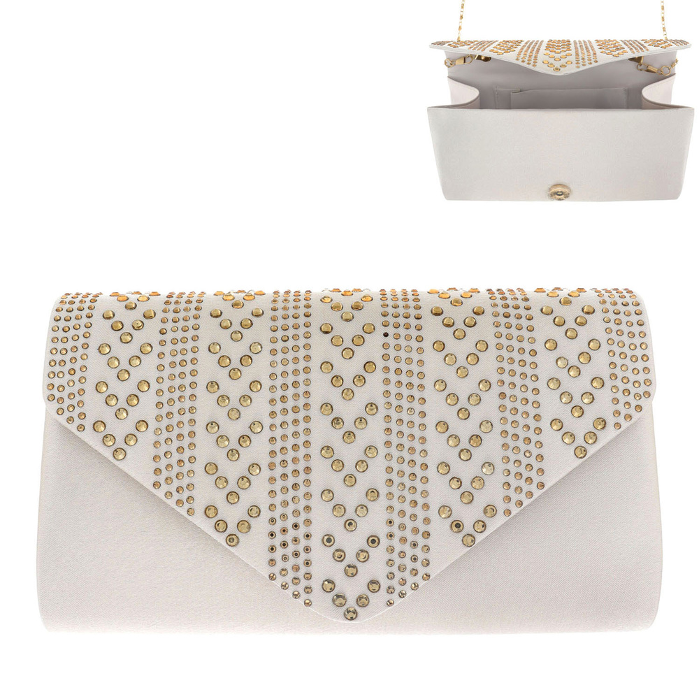 ELEGANT RHINESTONE DESIGN ENVELOPE CLUTCH HANDBAG WITH CHAIN STRAP - EVENING FORMAL WEDDING PARTY BAGS