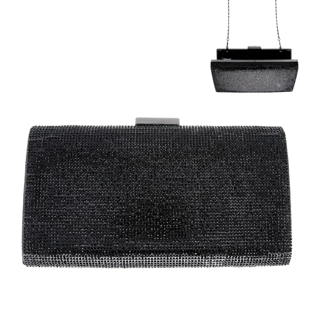 CRYSTAL RHINESTONE EVENING BOX CLUTCH PURSE WITH DETACHABLE METAL CHAIN STRAP
