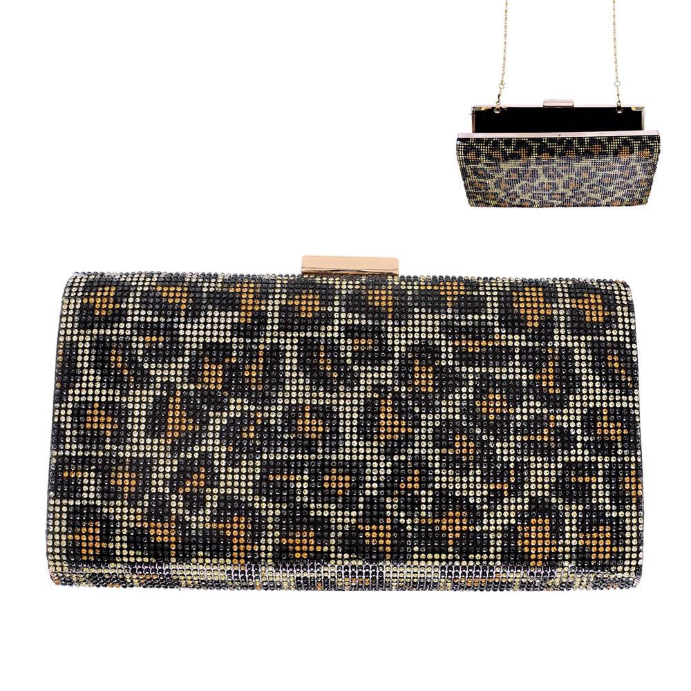 CRYSTAL RHINESTONE EVENING BOX CLUTCH PURSE WITH DETACHABLE METAL CHAIN STRAP