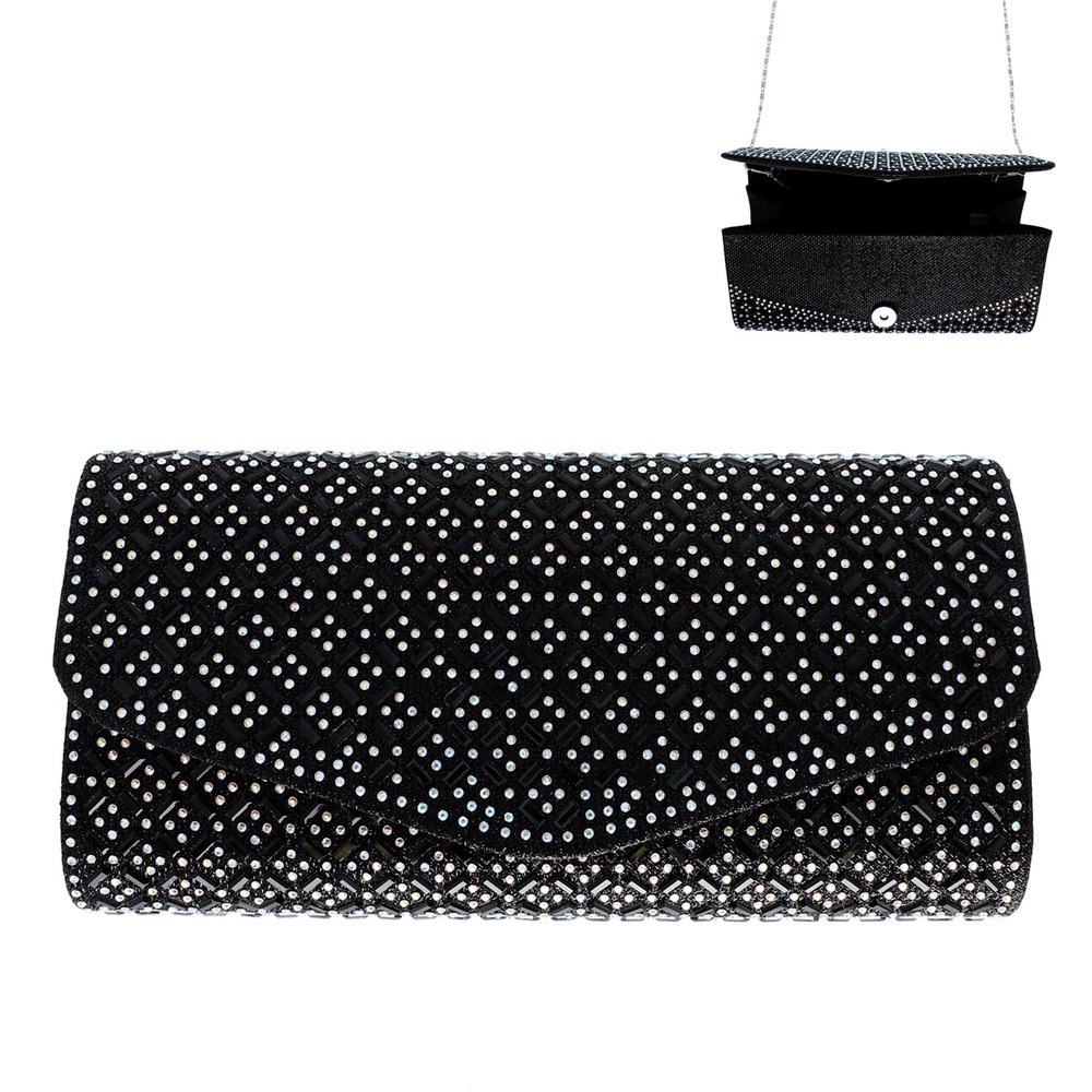 45" INCH STRAP CRYSTAL RHINESTONE EVENING ENVELOPE CLUTCH PURSE WITH DETACHABLE METAL CHAIN STRAP