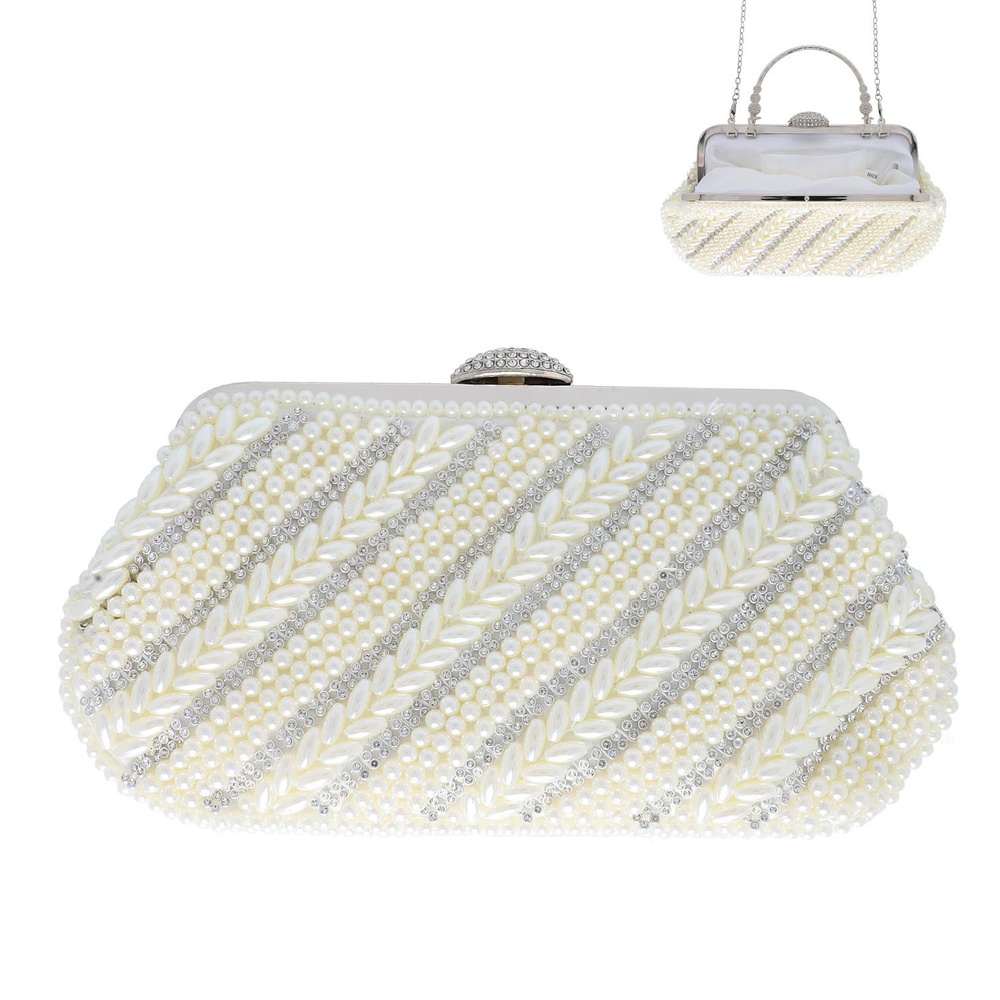 Bridal Jeweled Closure Pearl Striped Box Clutch
