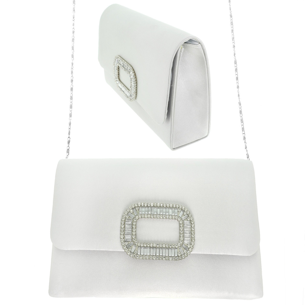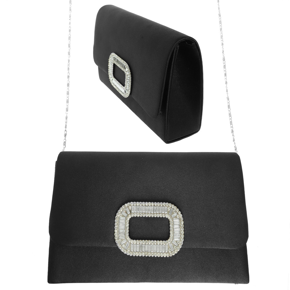 EVENING CLUTCH PURSE WITH DETACHABLE METAL CHAIN STRAP