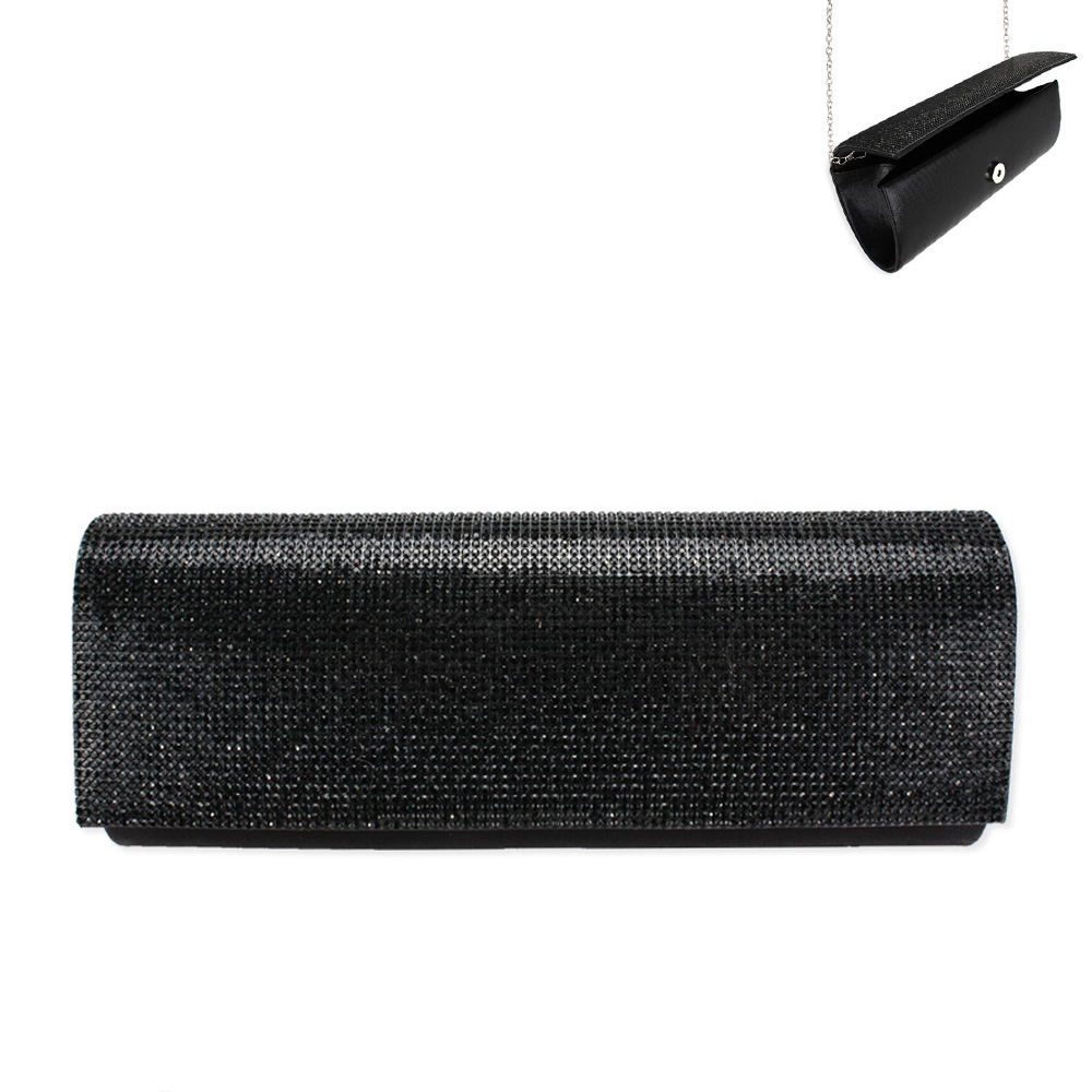 Rhinestone Covered Fabric Evening Clutch Purse With Chain Strap Bag3940bk