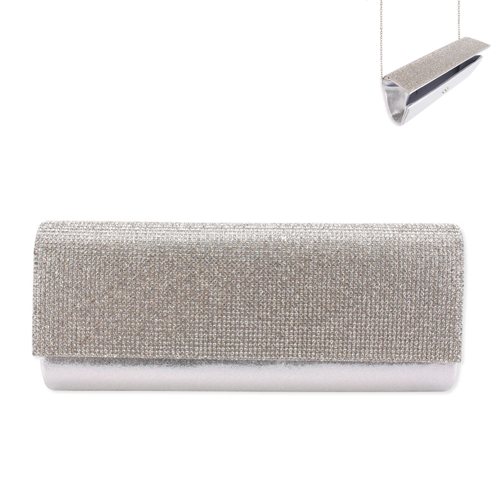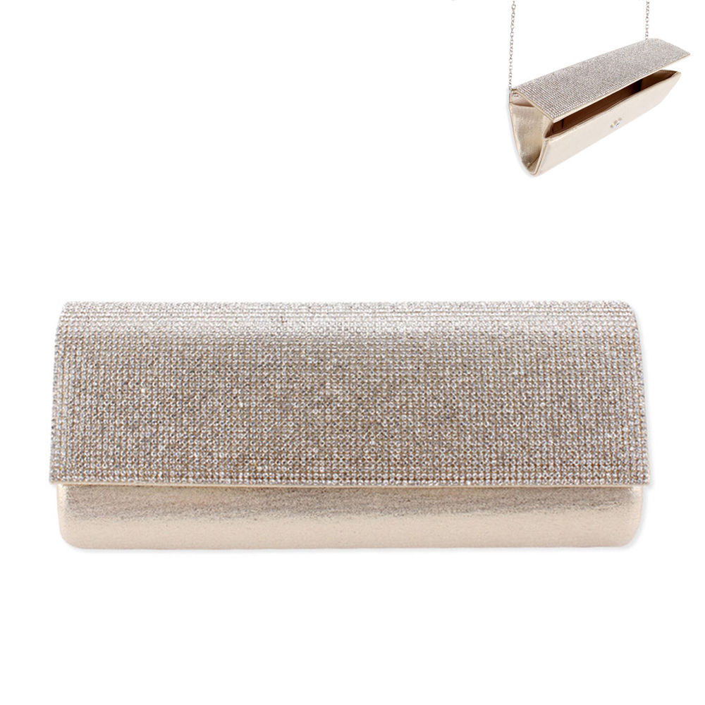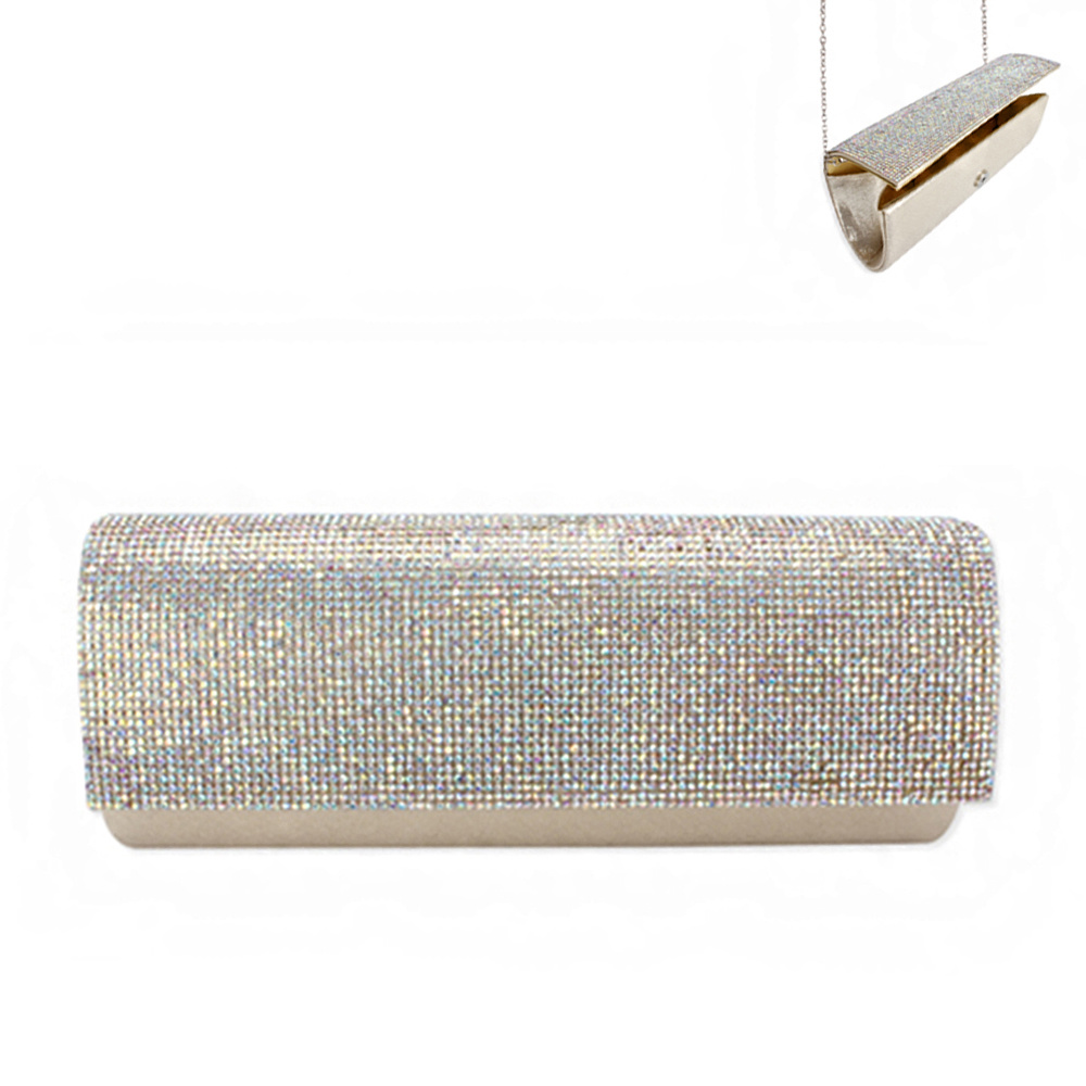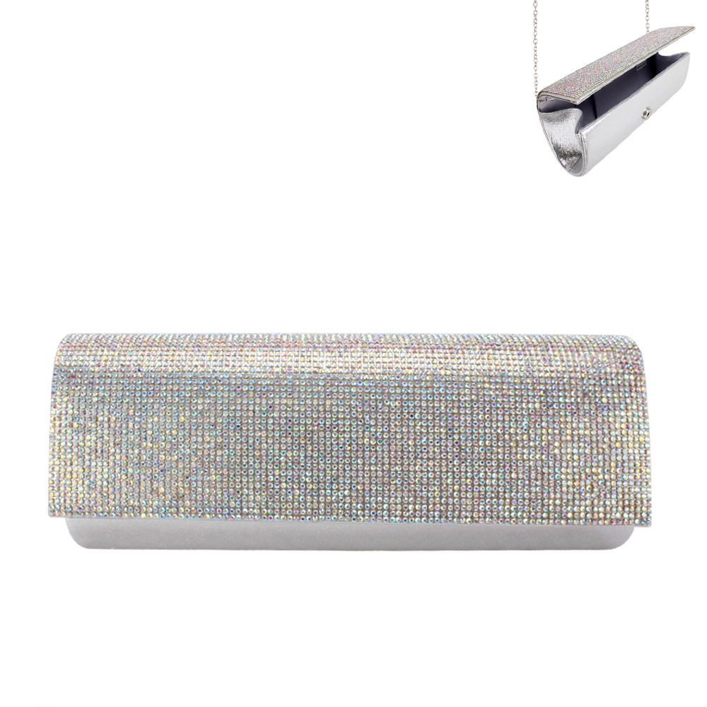 Rhinestone Covered Fabric Evening Clutch Purse with Chain Strap