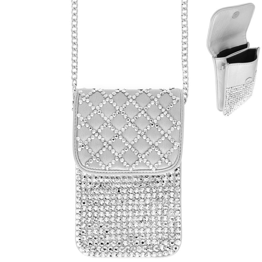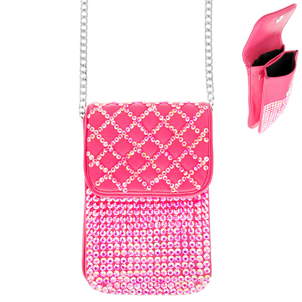 RHINESTONE MINI CROSSBODY CELL PHONE BAG WITH CHAIN STRAP