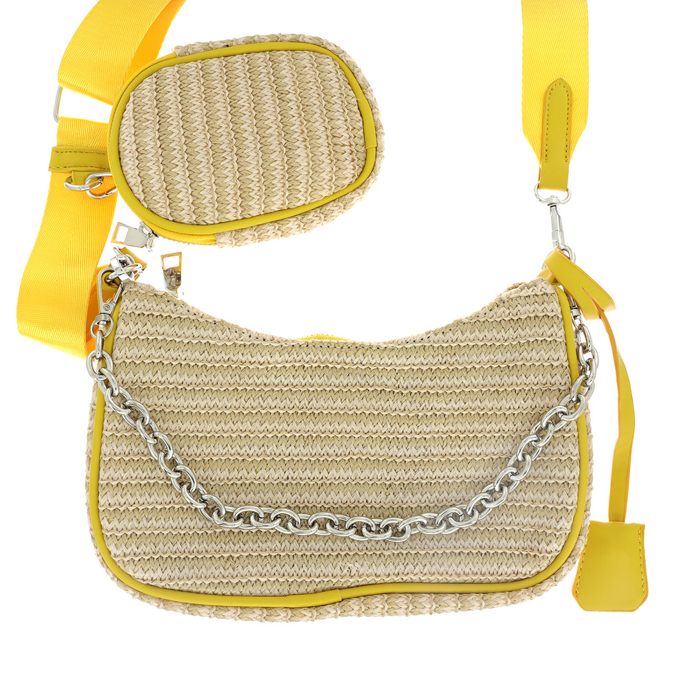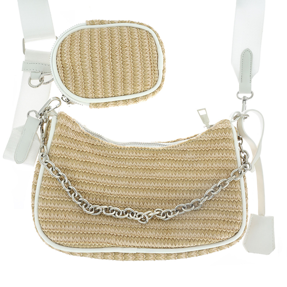 DUAL STRAP CONVERTIBLE CHAIN STRAP STRAW CROSSBODY BAG AND SHOULDER BAG WITH DETACHABLE COIN PURSE