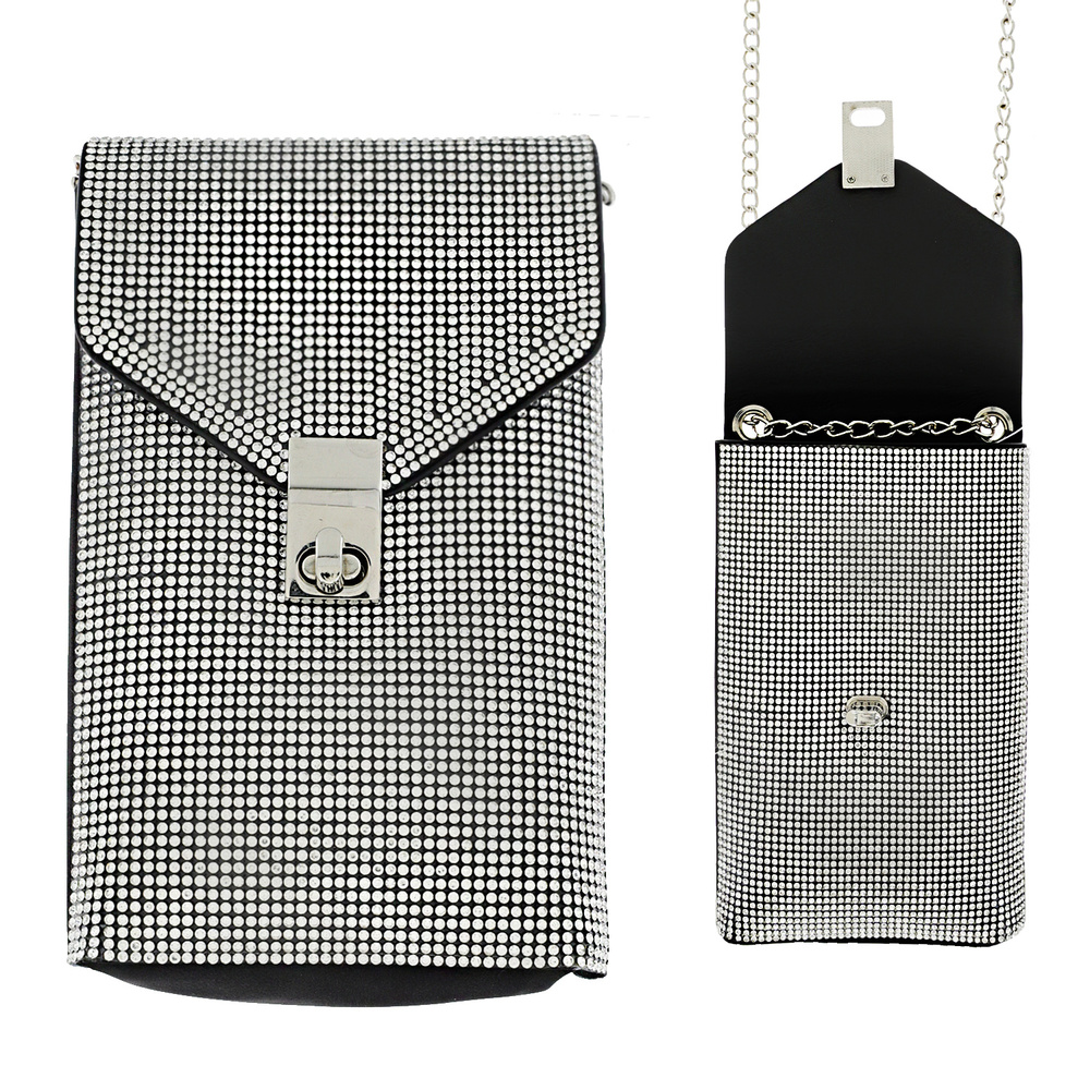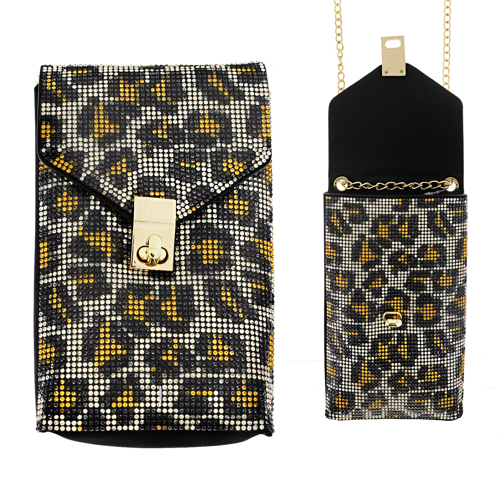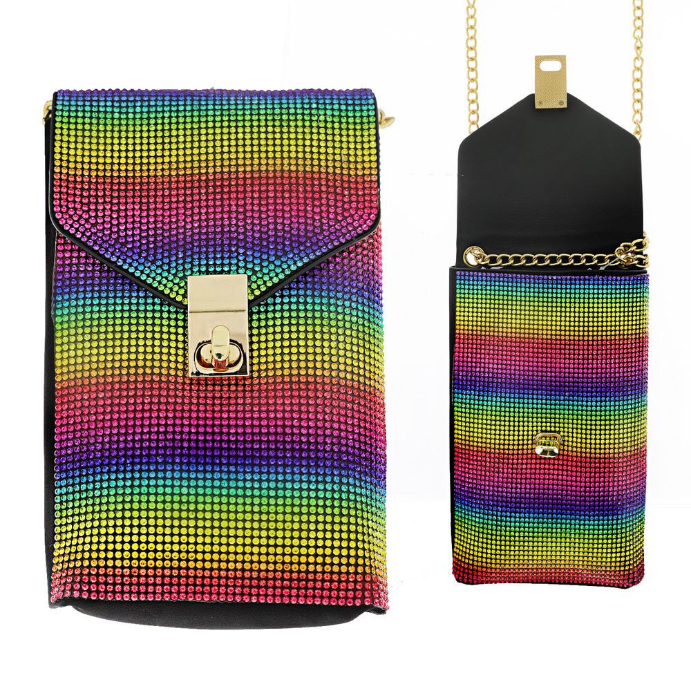 CLEAR/ LEOPARD/ RAINBOW-CRYSTAL RHINESTONE STUDDED CROSSBODY BAG WITH DETACHABLE CHAIN STRAP