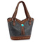 Floral Embossed Metal Studded Western Fringe Charm Stitch Trim Shoulder Bag