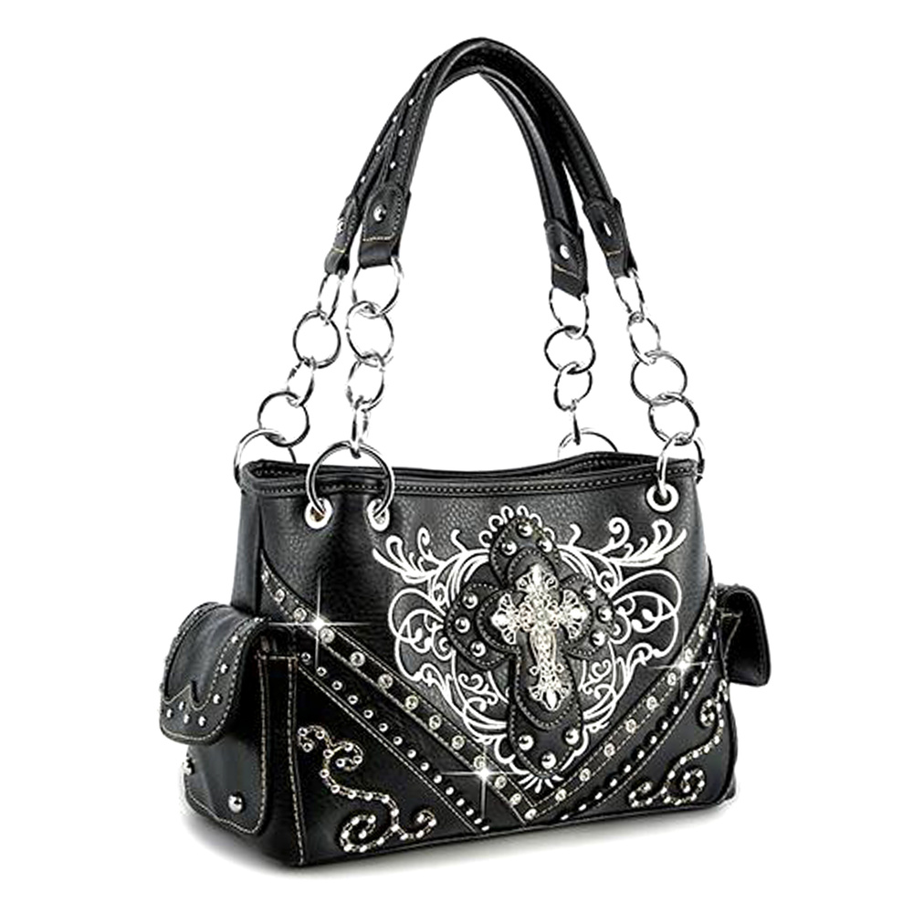 CROSS DESIGN CRYSTAL RHINESTONE SHOULDER BAG WITH CHAIN STRAPS