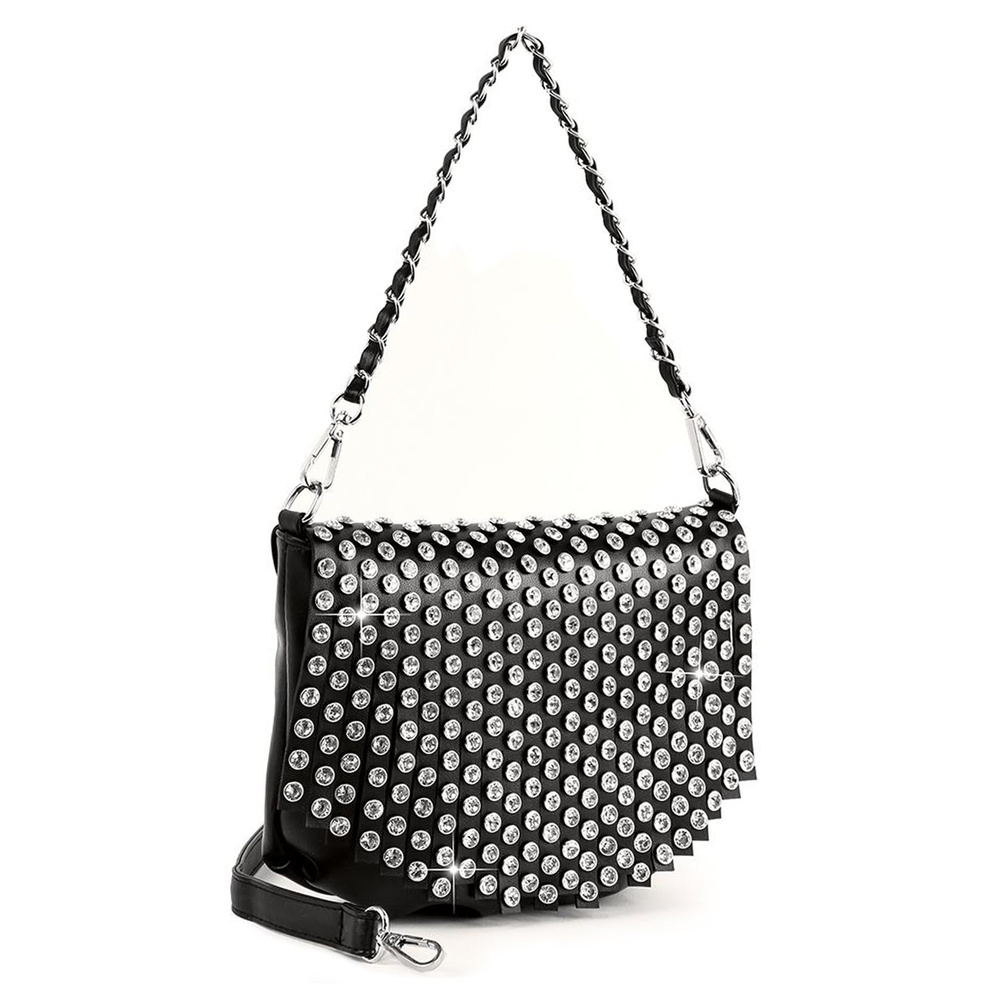CRYSTAL RHINESTONE STUDDED MESSENGER BAG WITH DUAL REMOVABLE STRAP