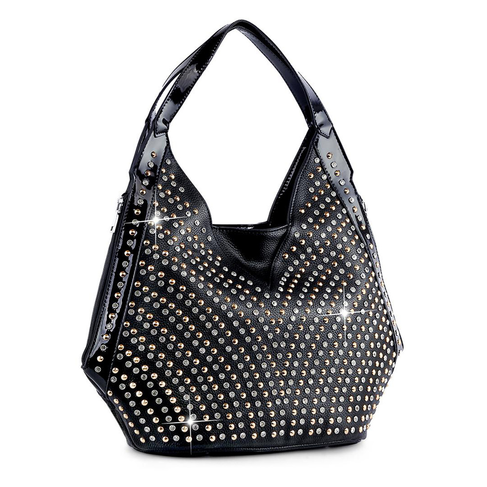 CRYSTAL RHINESTONE TWO-TONE CONTRAST STUDDED HOBO PURSE