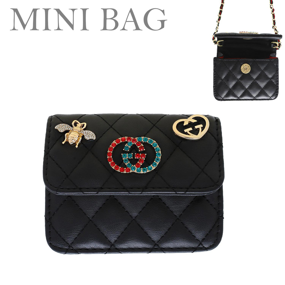 52" STRAP FASHIONISTA HONEY BEE MINI QUILTED CHARM EMBELLISHED HANDBAG WITH DETACHABLE METAL WOVEN CHAIN STRAP