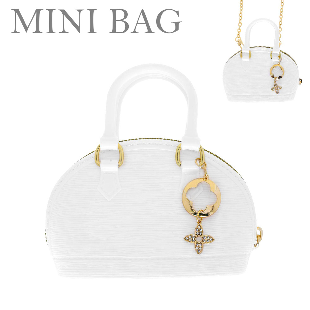52" STRAP MINI TOP HANDLE QUATREFOIL CHARM HANDBAG WITH DETACHABLE METAL CHAIN STRAP
