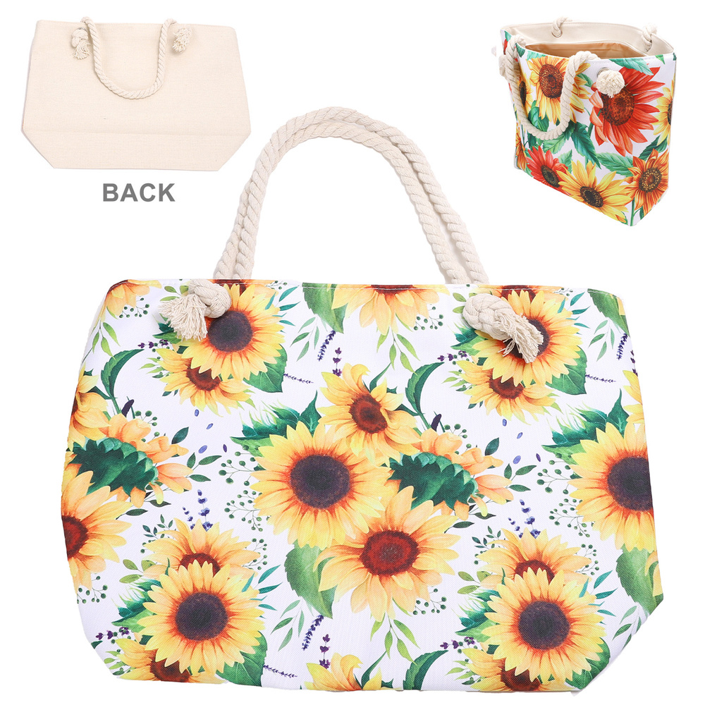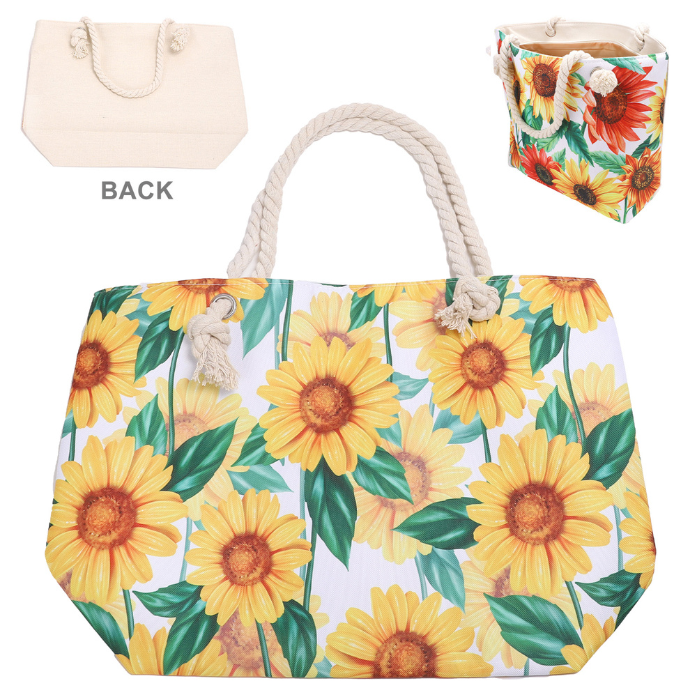SUNFLOWER PRINT ROPE HANDLE LARGE TOTE BAG