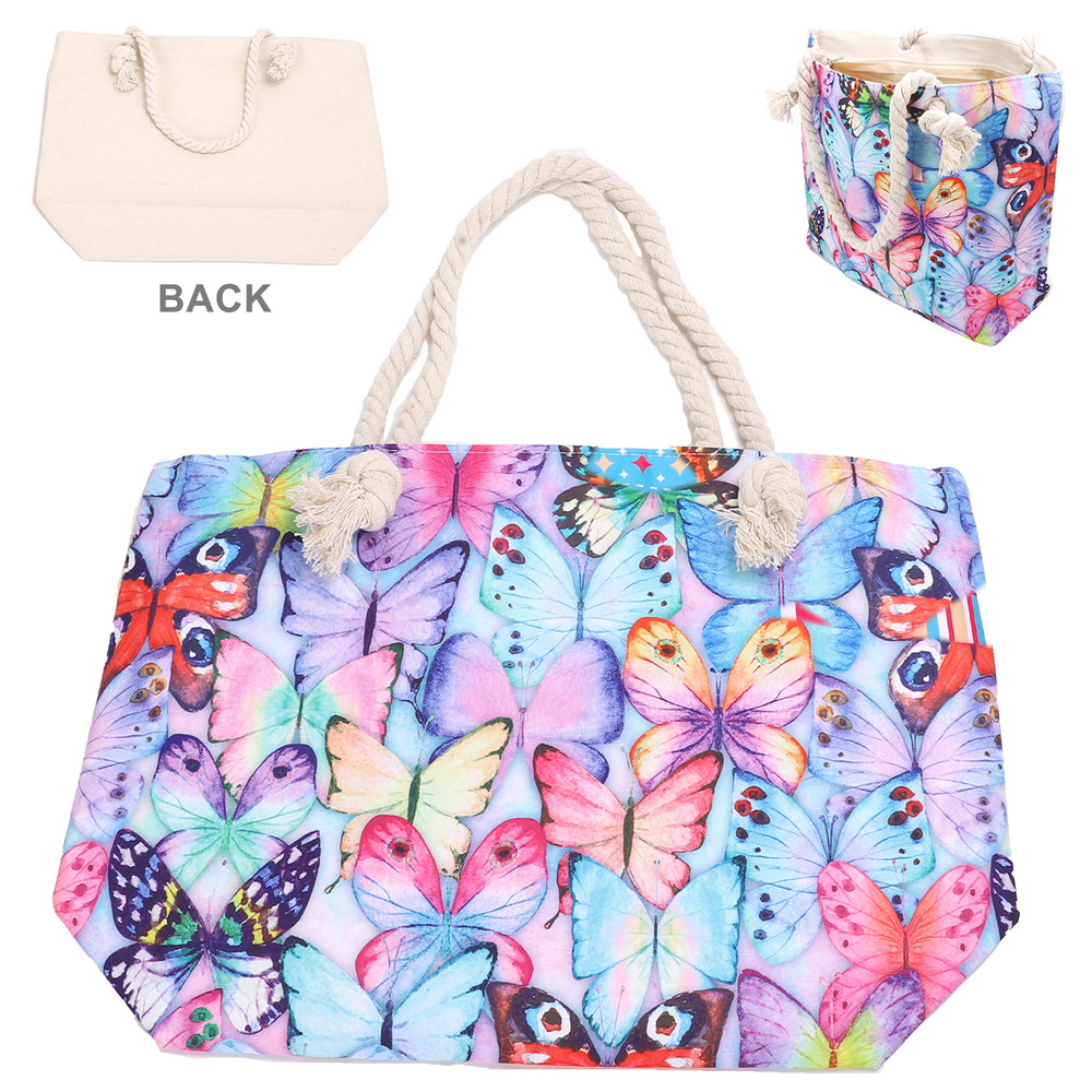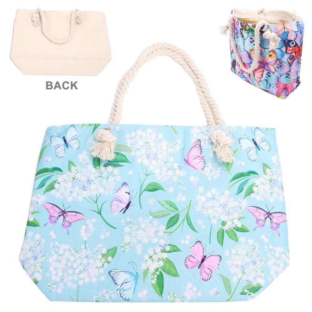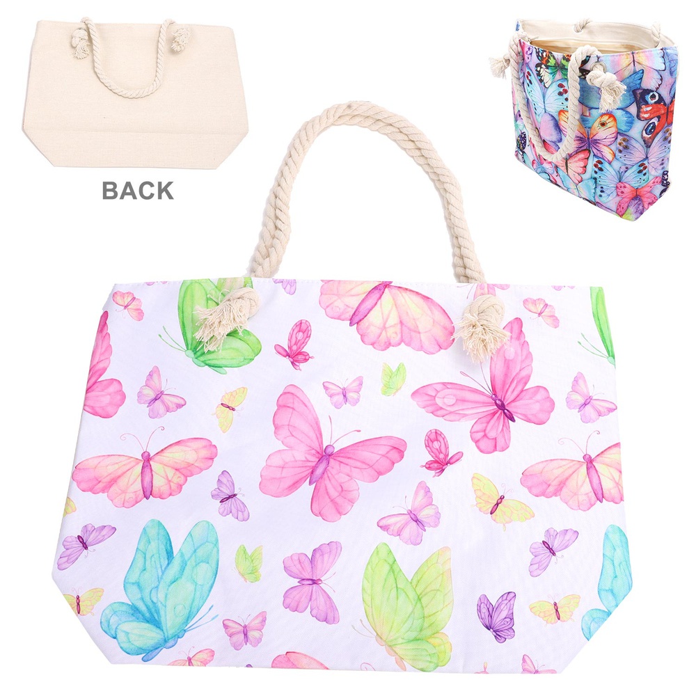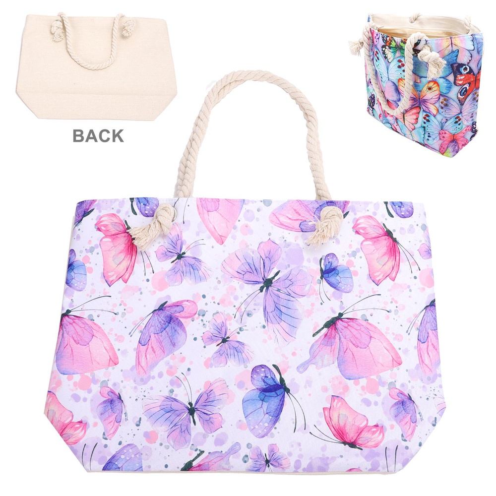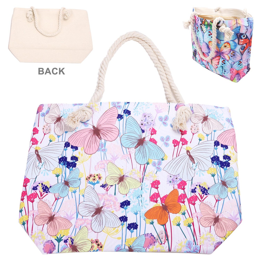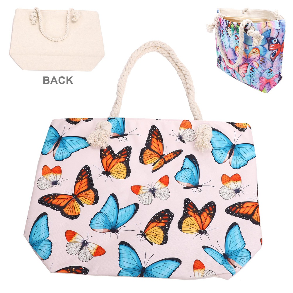 90S AESTHETIC BUTTERFLY PRINT ROPE HANDLE LARGE CANVAS TOTE BAG
