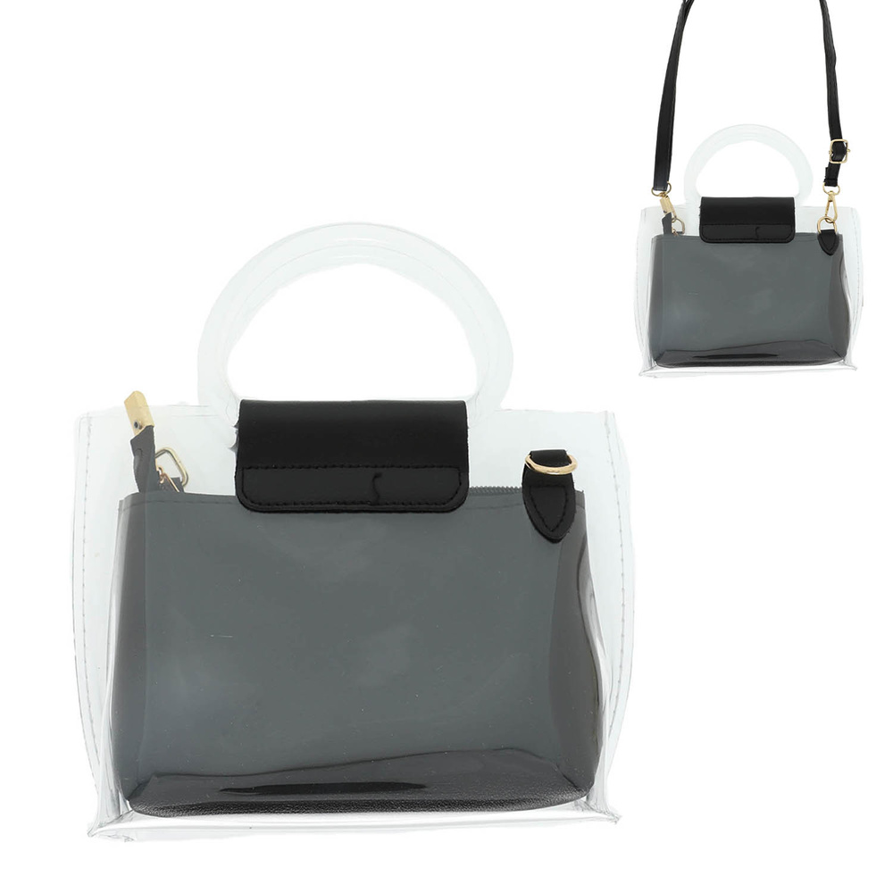 CLEAR PVC CROSSBODY BAG WITH SATCHEL POUCH AND ADJUSTABLE STRAP