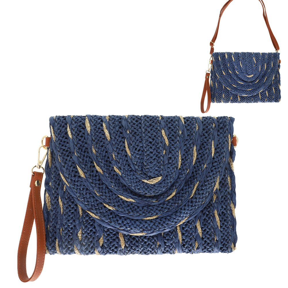 CROSSBODY STRAW WOVEN CLUTCH BAG WITH REMOVEABLE ADJUSTABLE STRAP