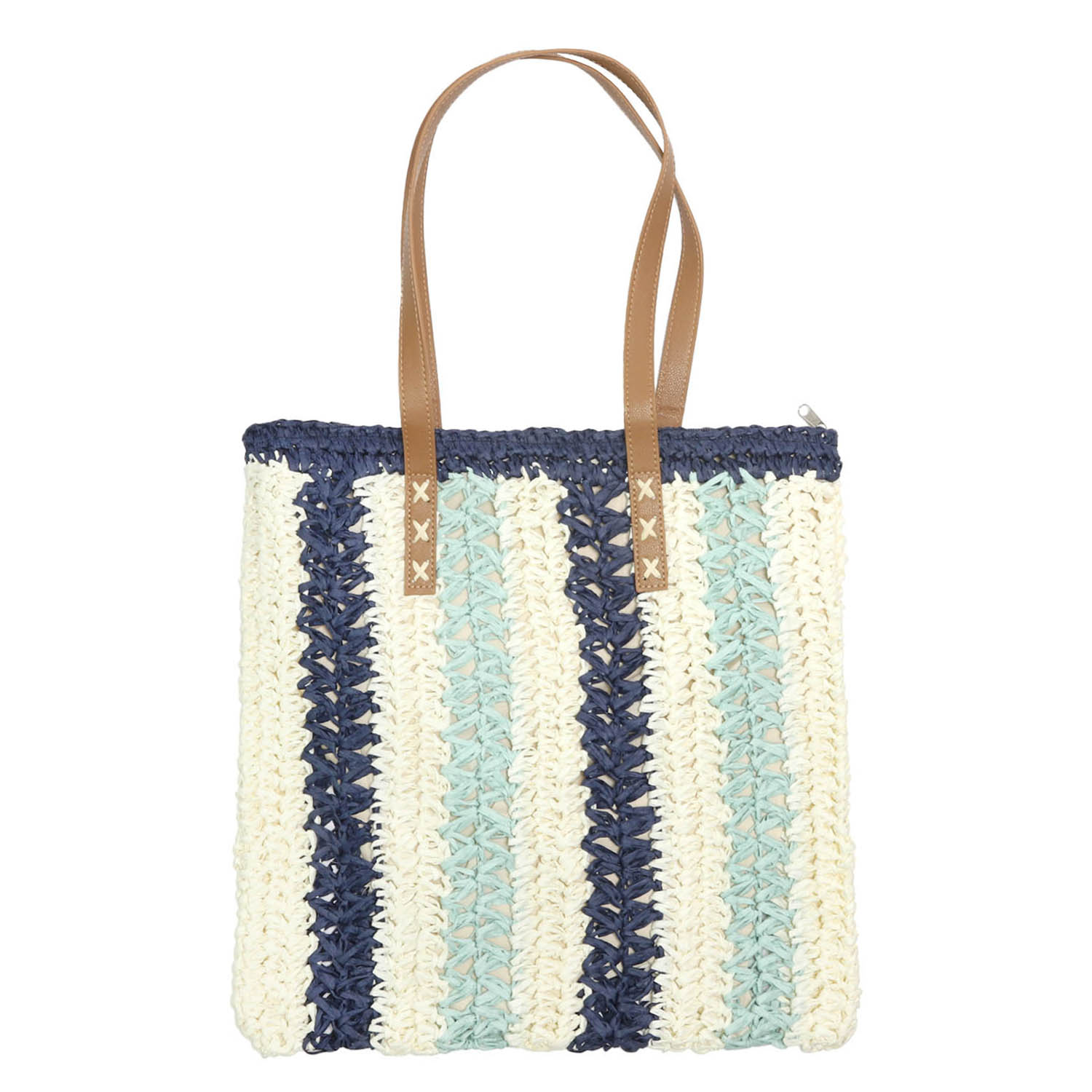 STRAW WOVEN STRIPED SHOULDER TOTE BAG WITH ZIPPER