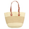 STRIPED PATTERNED STRAW WOVEN SHOULDER BAG WITH FAUX LEATHER HANDLES