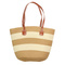 TWO-TONE STRIPED COLORBLOCK STRAW WOVEN SHOULDER BAG WITH FAUX LEATHER HANDLES