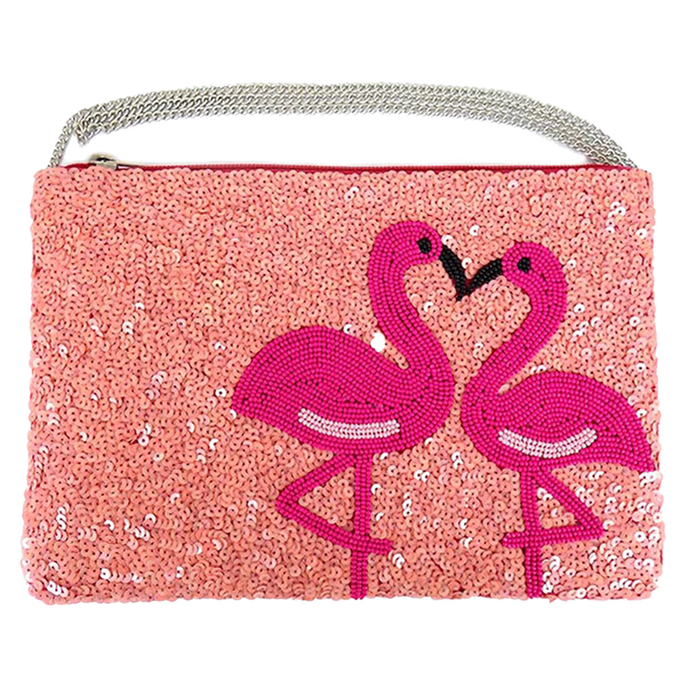 FLAMINGO HEART HANDMADE BEADED/EMBROIDERED TROPICAL CROSSBODY BAG