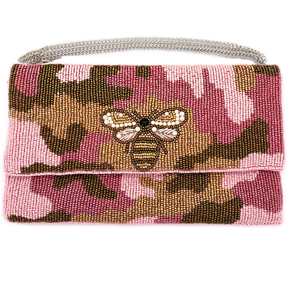 HONEY BEE CAMO HANDMADE BEADED CLUTCH CROSSBODY BAG