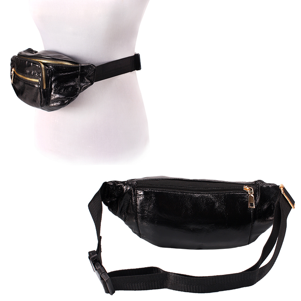 BLACK FANNY PACK W/ GOLD ZIPPERS