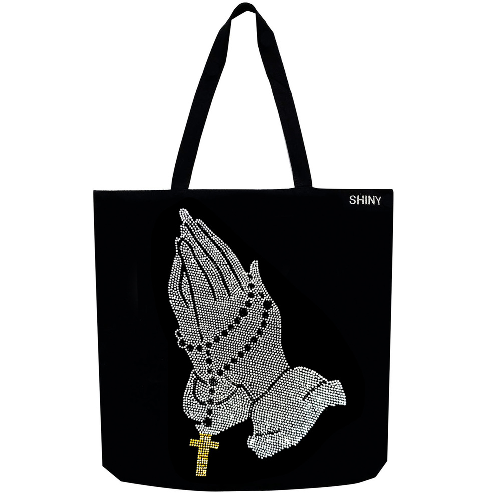 PRAYER HANDS - CRYSTAL RHINESTONE STUDDED JEWELED CANVAS TOTE BAG