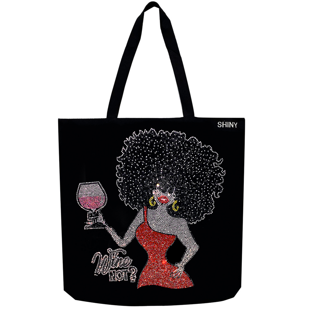 WINE NOT CRYSTAL RHINESTONE STUDDED JEWELED CANVAS TOTE BAG